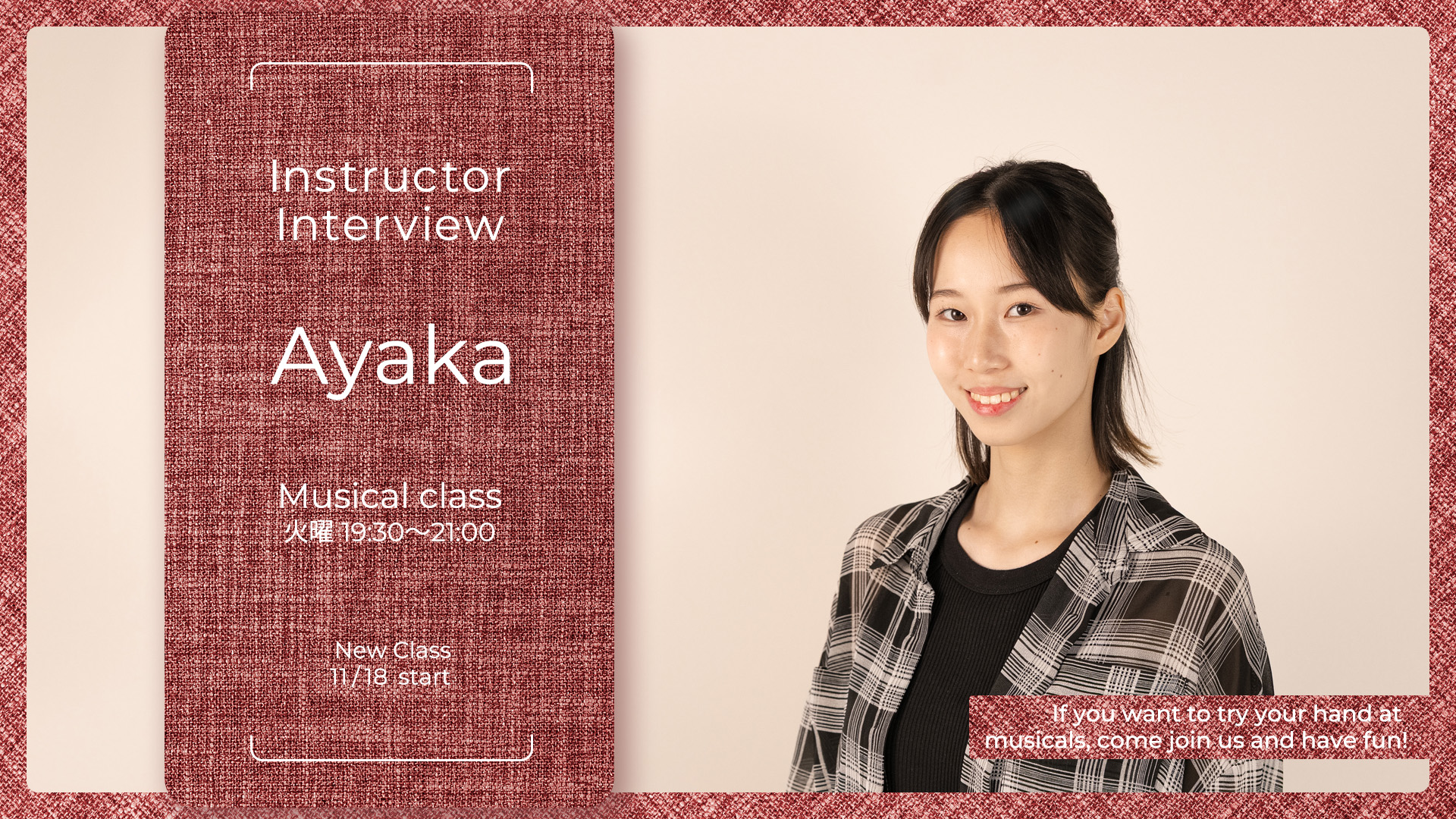 新しくAyaka先生の未経験・初心者向けミュージカルクラスを開講します(火曜 19:30~ @新宿)